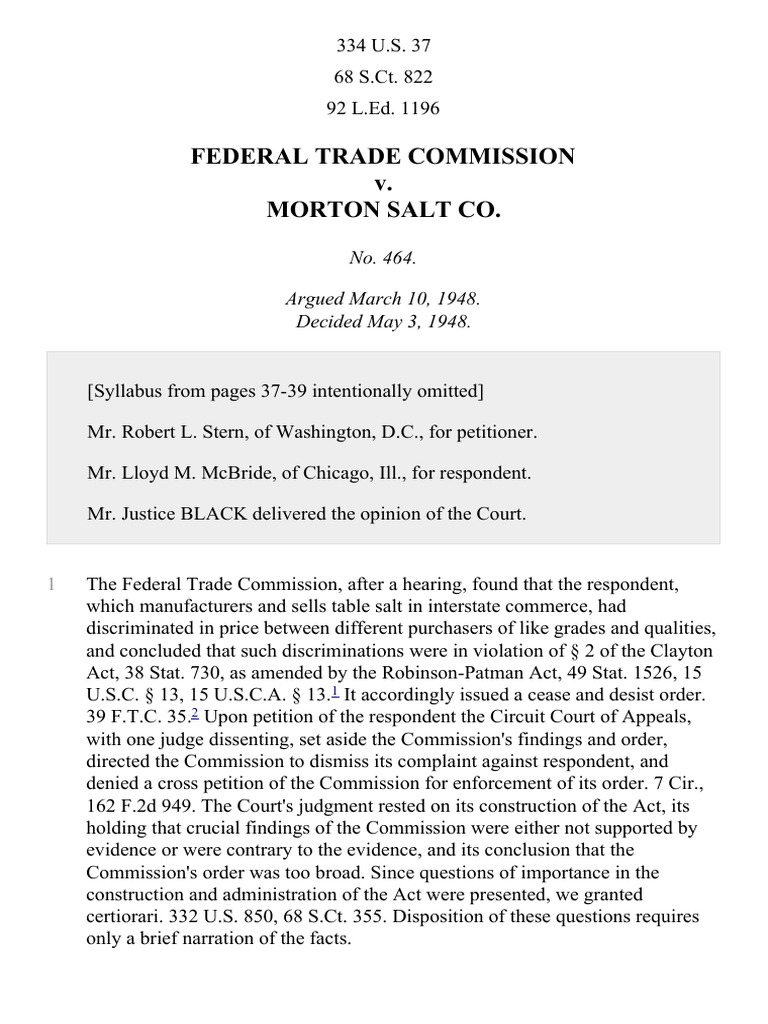 Federal Trade Commission v. Morton Salt Co.: No. 464 ...